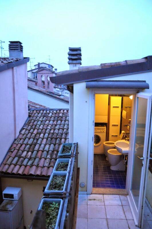 Terrazzo panoramico al secondo piano servito da un bagno con sanitari e lavatrice.