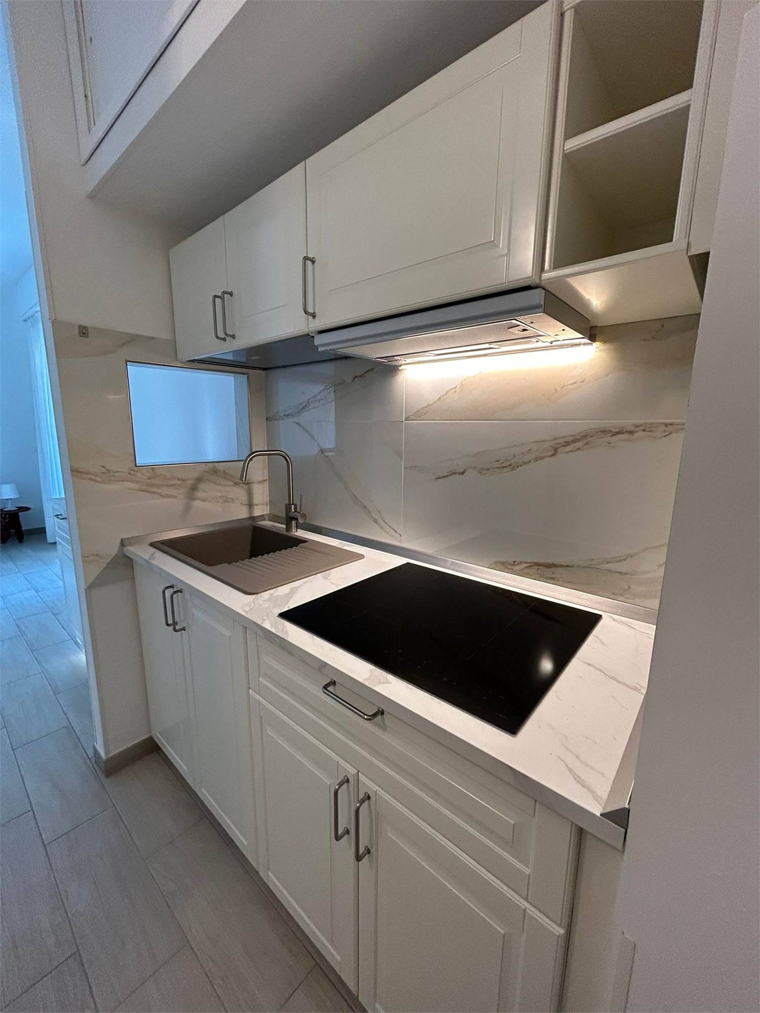 L’appartamento, di recente ristrutturazione, si presenta completamente arredato con mobilio nuovo ed è composto da: