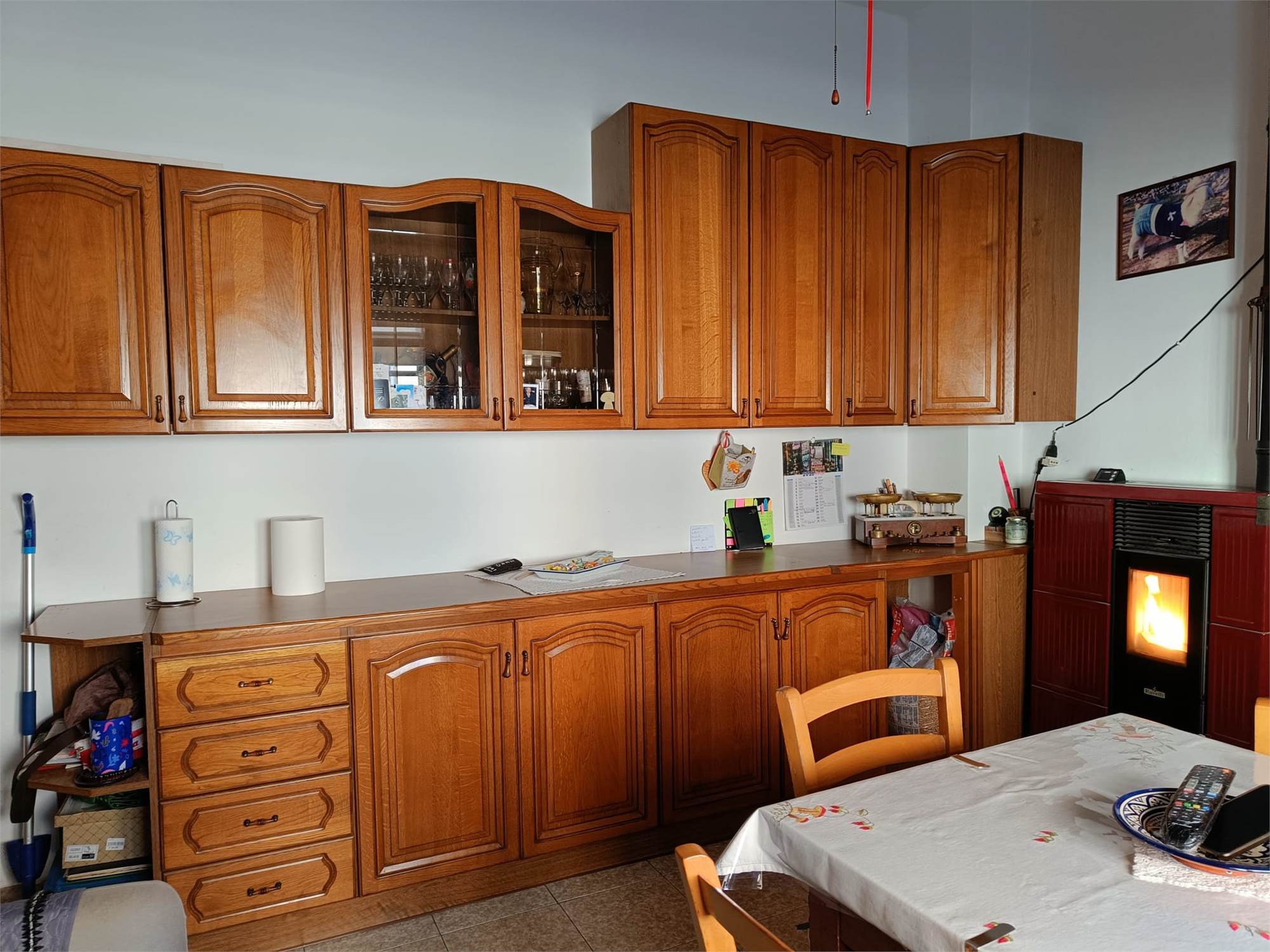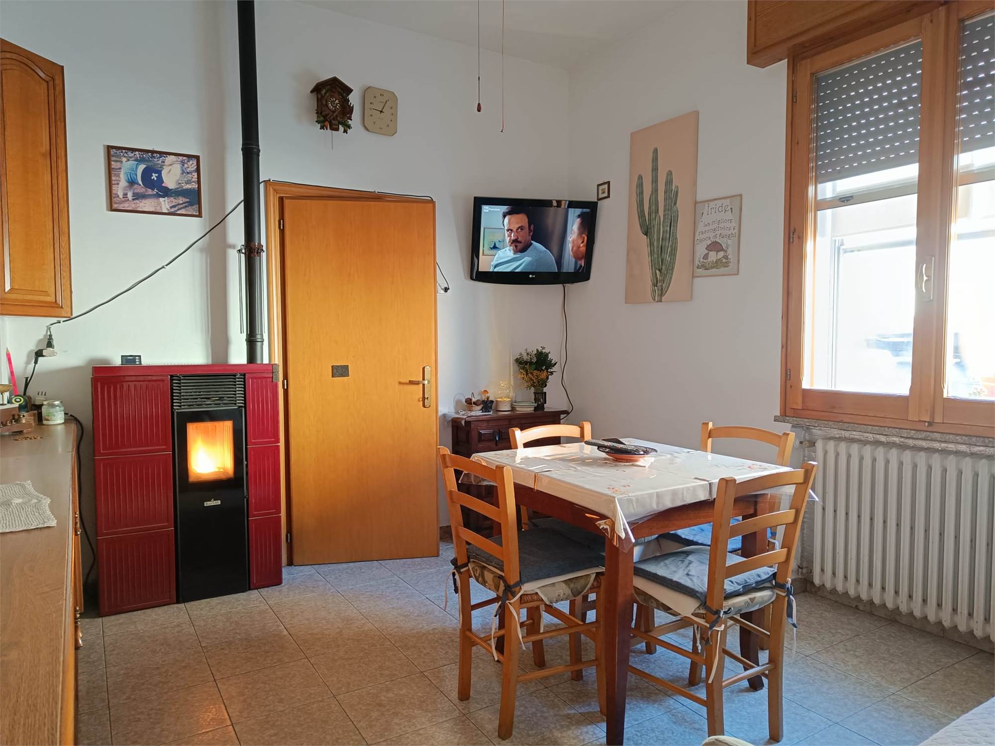 • Zona Giorno: Ingresso che conduce a un accogliente soggiorno dotato di stufa a pellet, perfetta per il calore invernale. La cucina è abitabile e servita da un angolo cottura separato, ideale per mantenere l'ordine nella zona living.